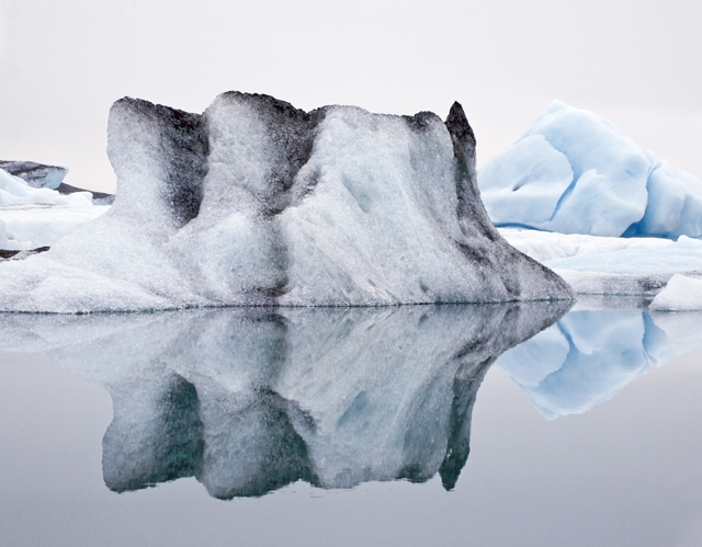 spiegeling ijsblokken in ijsbergenmeer; reflection of iceblocks