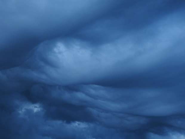 Mammatus wolken, met de rondingen naar beneden, kondigen meestal slecht weer tevoren aan. Foto Paul Bohre