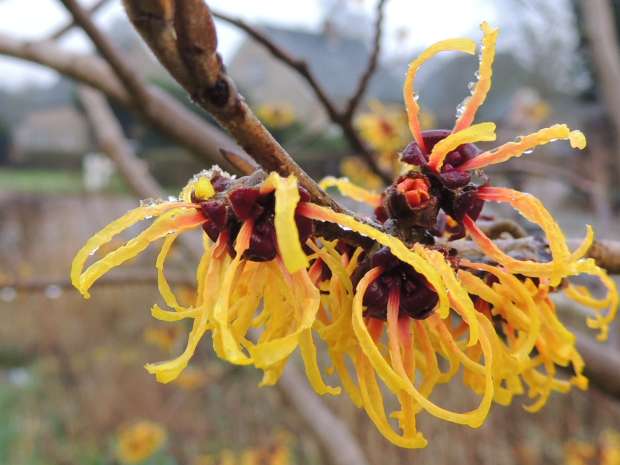 De toverhazelaar bloeit vanaf eind december tot in maart. De in clusters zittende bloemen hebben vier meeldraden en zijn meestal lichtgeel tot heldergeel, maar soms ook rood, oranje en roodbruin. Een bloeiende hazelaar geeft geen krimp, al daalt de temperatuur tot – 25 graden.