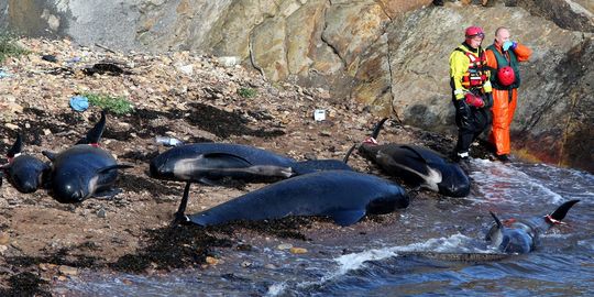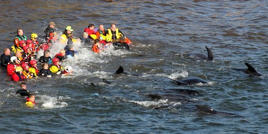 In Schotland zijn het afgelopen weekend 26 walvissen aangespoeld. De kustwacht en de brandweer kwamen direct in actie om de dieren te redden. Met heel veel inspanning is het gelukt om 10 dieren weer terug in het water te krijgen, de andere 16 hebben het helaas niet overleefd. Op de foto’s is de reddingsoperatie in volle actie.