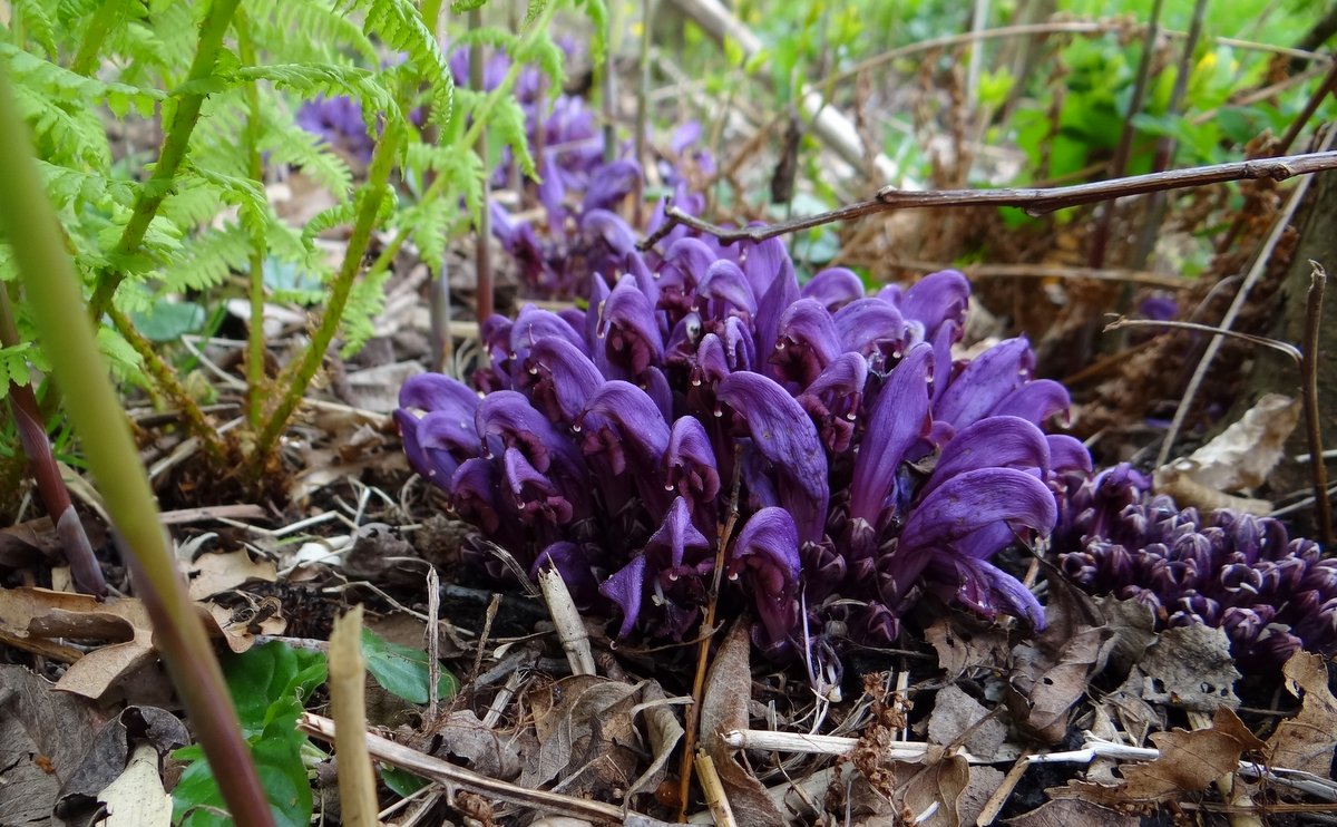 In het voorjaar ontluiken veel fleurige stinzenplanten. Krokussen, holwortels, wilde hyacinten, om maar een paar kleurrijke voorbeelden te noemen. Maar soms kom je daartussen ook hele andere planten tegen. De paarse schubwortel (Lathraea clandestina) of prachtschubwortel is er zo een. Het is een laag op de grond groeiende blijvende plant uit de bremraapfamilie (Orobanchaceae).