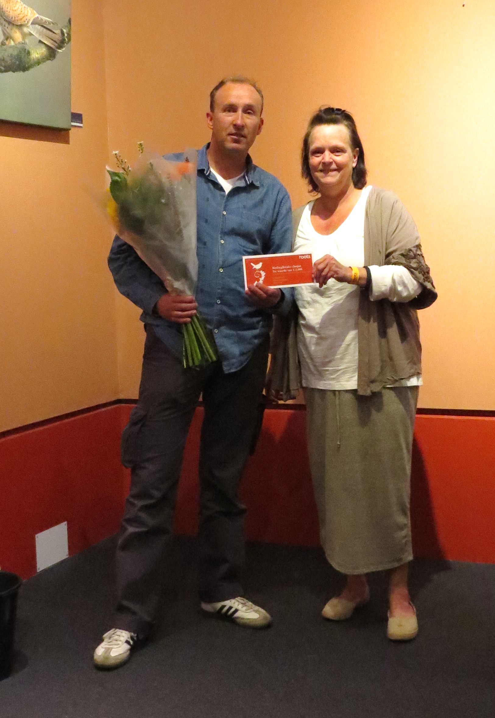 De gelukkige winnaar Ronald Kamphuis en Roots-hoofdredacteur Fanny Glazenburg.