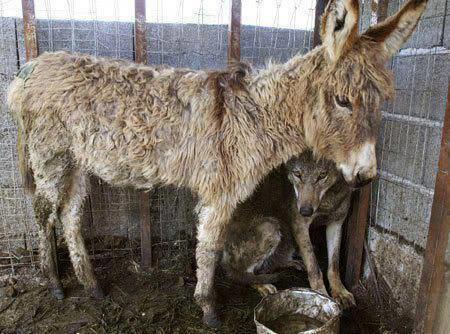 Een ontroerend, waargebeurd verhaal. In 2007 werd een wolf gevangen in Albanië. Het dier werd in gevangenschap gehouden en als etensmaal kreeg het dier een oude, afgeschreven (maar levende) ezel toegeschoven. Maar er volgde geen slachtpartij. In plaats van deze ezel op te eten werden de wolf en de ezel goede vrienden! Deze vriendschap kreeg de aandacht van de Albanese pers en het Albanese publiek was ontroerd door deze vriendschap. Duizenden mensen smeekten de eigenaar van deze wolf en ezel om de dieren niet af te maken. En zo geschiedde. Ze leefden nog lang en gelukkig.