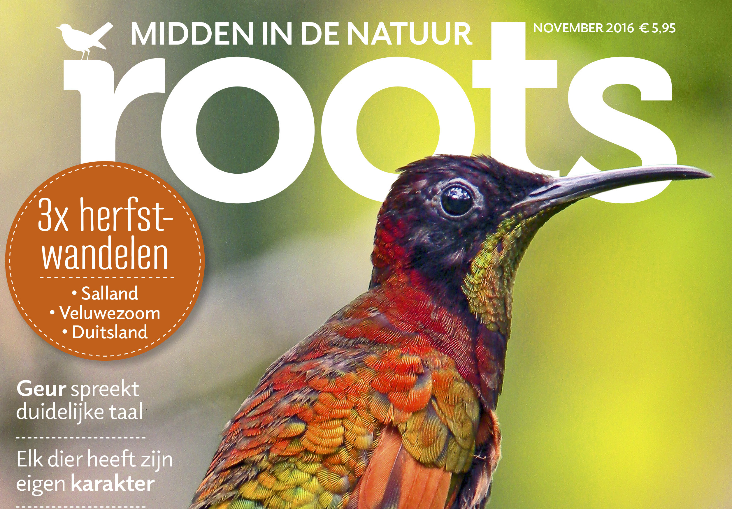 De Roots november 2016 ligt vandaag in de winkel en op de deurmat. Een lekker herfstnummer met maar liefst 3 herfstwandelingen: de Sallandse Heuvelrug, de Veluwezoom en het Duitse natuurpark Hainich. Verder alles over geuren, dierenkarakters en het vernuft van planten. Ook mooi: het kleurrijke leven van kolibries!