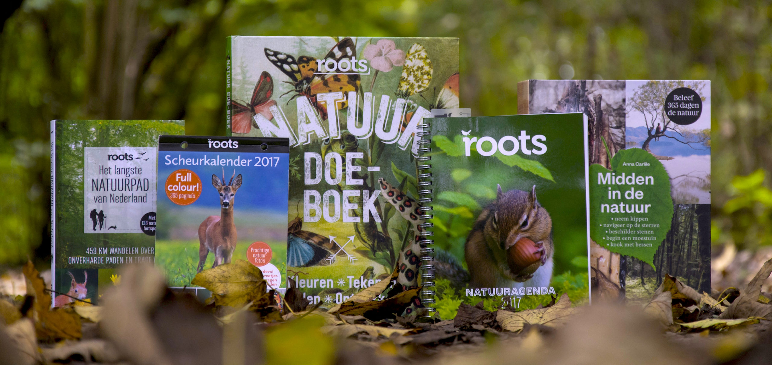 Wat zit er in het feestpakket: de Roots Natuuragenda, de Roots Scheurkalender, de Roots wandelgids Langste Natuurpad van Nederland, het Natuur Doeboek en het lifestyle boek Midden in de Natuur.