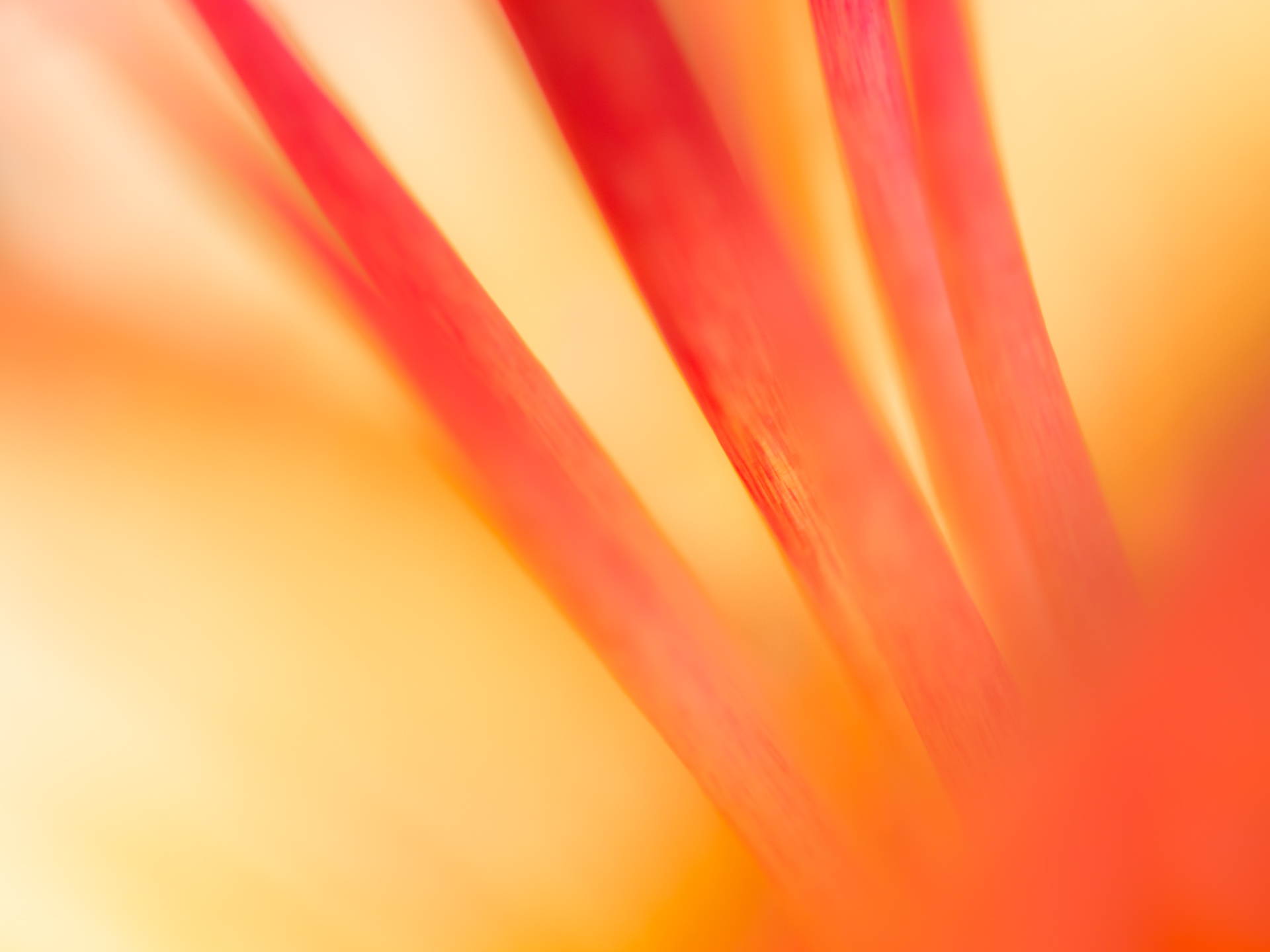 Bloemen fotograferen met een macrolens kan op vele manieren. Je kunt registrerend werken, door heel de bloem in beeld te brengen, of juist abstract. Ik heb gekozen voor een abstracte foto, wat een vervreemdend beeld geeft. Een lelie is er nauwelijks meer in te herkennen. Slechts een heel klein gedeelte van de meeldraad is scherp, de rest van de foto bestaat uit onscherpte. Om dit voor elkaar te krijgen kies je een klein diafragma (f/2.8). De voor- en achtergrond worden gevormd door de bladeren van de lelie en zelfs door de andere meeldraden. De meeldraad waarop ik scherp heb gesteld laat ik voor een groot deel wegvallen achter een voorliggende meeldraad, waardoor er slechts een paar millimeters scherpte overblijft. Omdat ik laag bij de grond fotografeer, moest ik deze foto vanuit de hand maken. De sluitertijd mocht dus niet te langzaam zijn om bewegingsonscherpte te voorkomen (trillende handjes!). Door de ISO op 400 in te stellen werd mijn sluitertijd 1/250 seconden. Rekening houdend met het brandpuntafstand van mijn macrolens (150 millimeter) is deze sluitertijd ruim voldoende.”