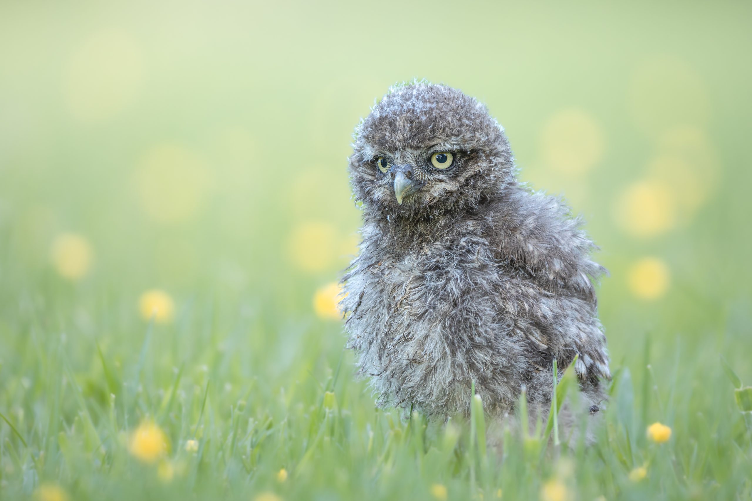 Deze foto is gemaakt tijdens het ringen van de steenuilen. Ik mocht met de plaatselijke vogelwerkgroep mee om de jonge steenuilen te ringen en na het ringen werden de steenuilen in het gras gezet en kon ik deze foto maken