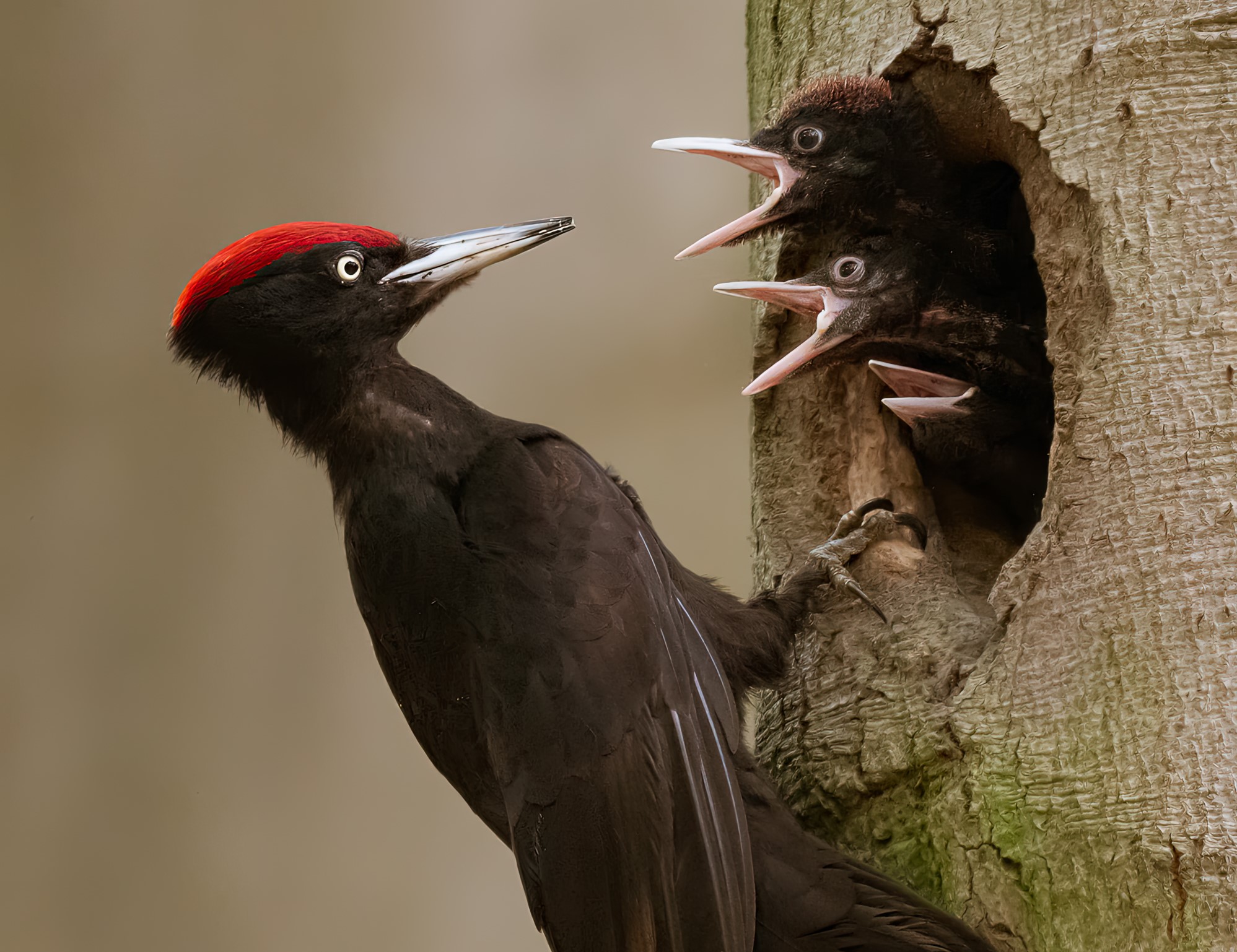 “Voor mij was het de allereerste keer dat ik de zwarte specht fotografeerde en dan nog eens met de jongen erbij.