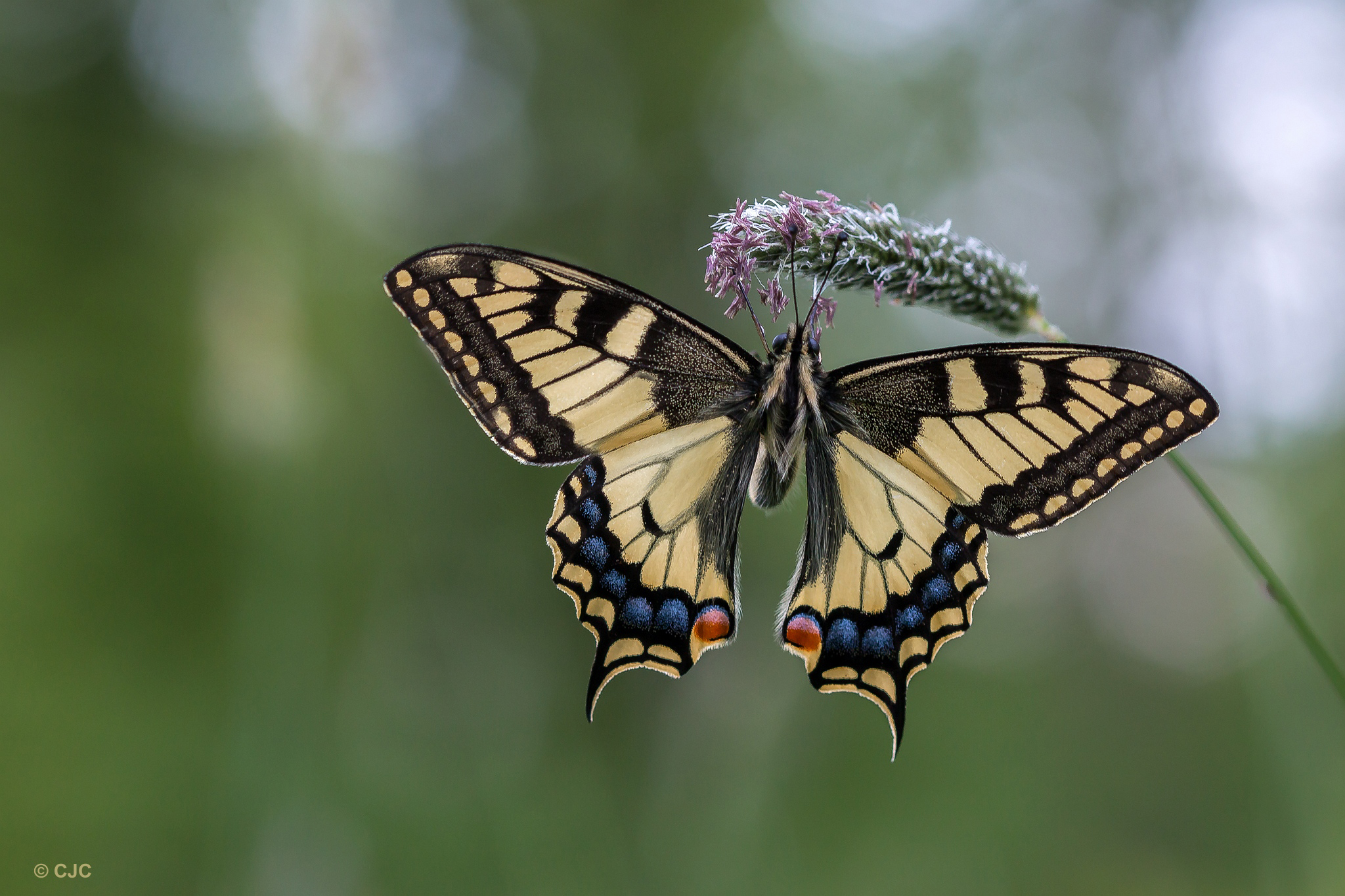Op een onstuimige voorjaarsavond trok ik er met mijn camera op uit. Toen ik in het natuurgebied was aangekomen, was de wind tot stormkracht aangewakkerd. Tot mijn verrassing zat in het hoge gras een koninginnenpage verscholen. Voorzichtig sloop ik dichterbij met de camera in de aanslag.