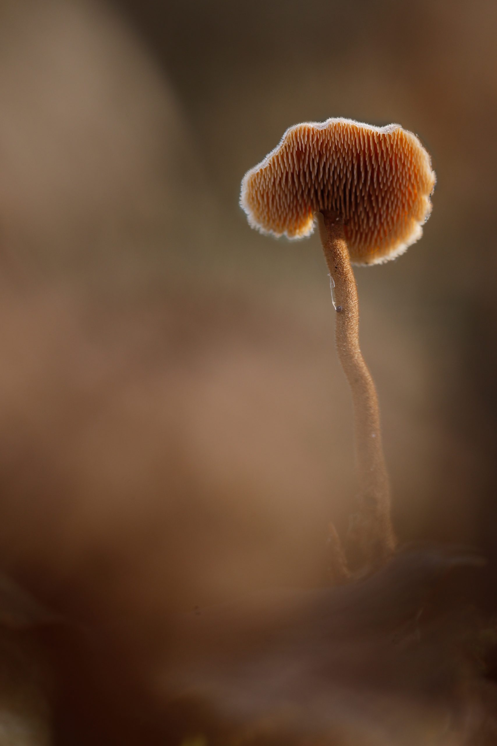 De hoogste tijd om mijn camera weer eens op deze schimmelbloemen te gaan richten. Eén van mijn favoriete soorten is de oorlepelzwam. Dat is een kleine zwam die op ondiep begraven dennen- en sparrenkegels groeit. Deze soort heeft zeer kenmerkende sporen in de vorm van stekels. De kleur van de hoed is afhankelijk van het seizoen. Deze varieert van licht geelbruin tot donker bruin.