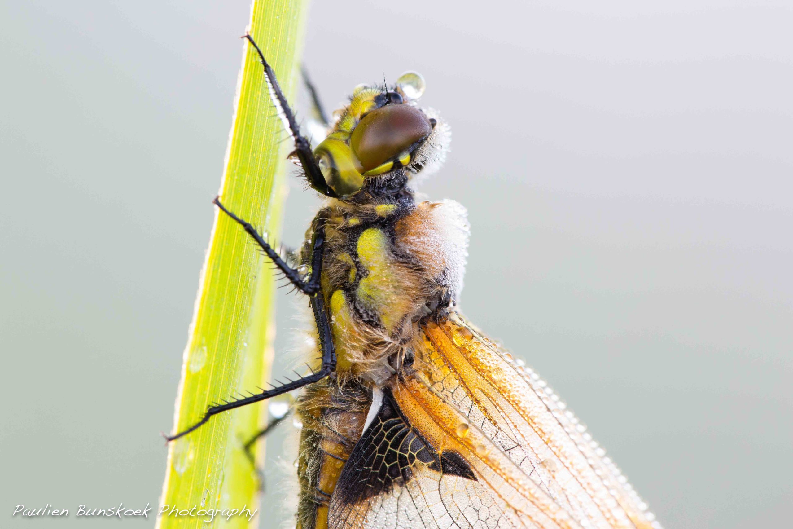 Het is weer de tijd van het jaar waarin met regelmaat mijn wekker al rond half vier afgaat. De reden dat ik zo vroeg opsta zijn de bedauwde insecten, vooral libellen en vlinders. Ik vind ze prachtig met al die druppels en kleuren en je kan dit alleen vroeg in de ochtend fotograferen als ze nog stil zitten. Het hele dier te fotograferen is mooi, maar ik fotografeer ook graag portretjes of andere details van het dier.