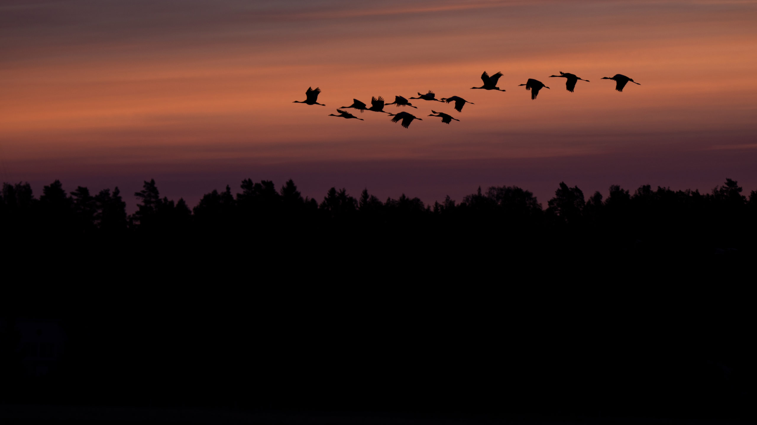 “Het is weer bijna zover. Je hoort het typische geluid, je kijkt naar boven en je ziet grote, v-vormige, groepen van overvliegende kraanvogels die vanuit het hoge noorden richting Noord Afrika, het Midden Oosten en het zuiden van Europa vliegen.
