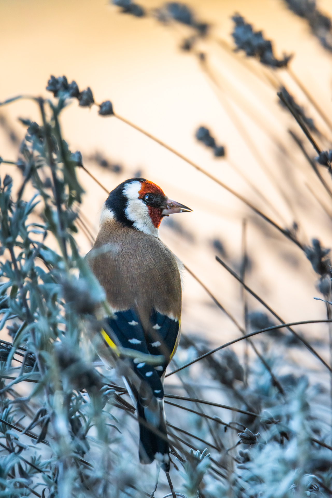 ‘De putters zitten er weer!’ Klinkt het luidkeels door het huis. Als door een wesp gestoken spring ik op van de bank en snel ik naar de keuken. Razendsnel gris ik de camera van het aanrecht en vervolg ik mijn weg naar de hal. Voorzichtigheid is nu geboden om onze gasten niet weg te jagen. De deur op een kier, daarna nóg een stukje verder totdat mijn lens door de opening naar buiten gestoken kan worden. De opluchting is groot, vier putters blijven rustig in de lavendel zitten en hebben mijn aanwezigheid niet opgemerkt.