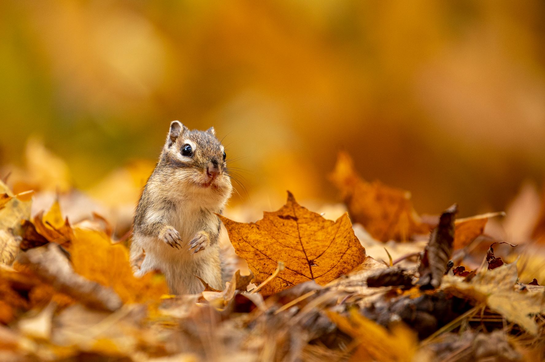 Een Siberische grondeekhoorn tijdens een prachtige herfstdag