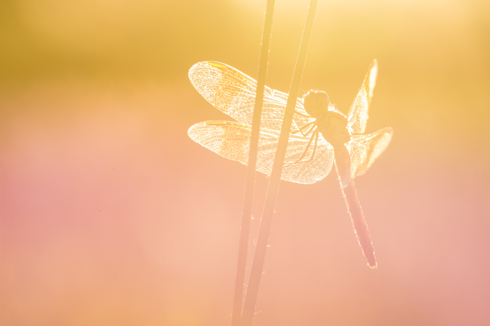• Vlinders en libellen kun je vaak het beste fotograferen in de vroege ochtend. Doordat het dan nog te koud is voor deze insecten om weg te vliegen kun je ze gemakkelijk benaderen.