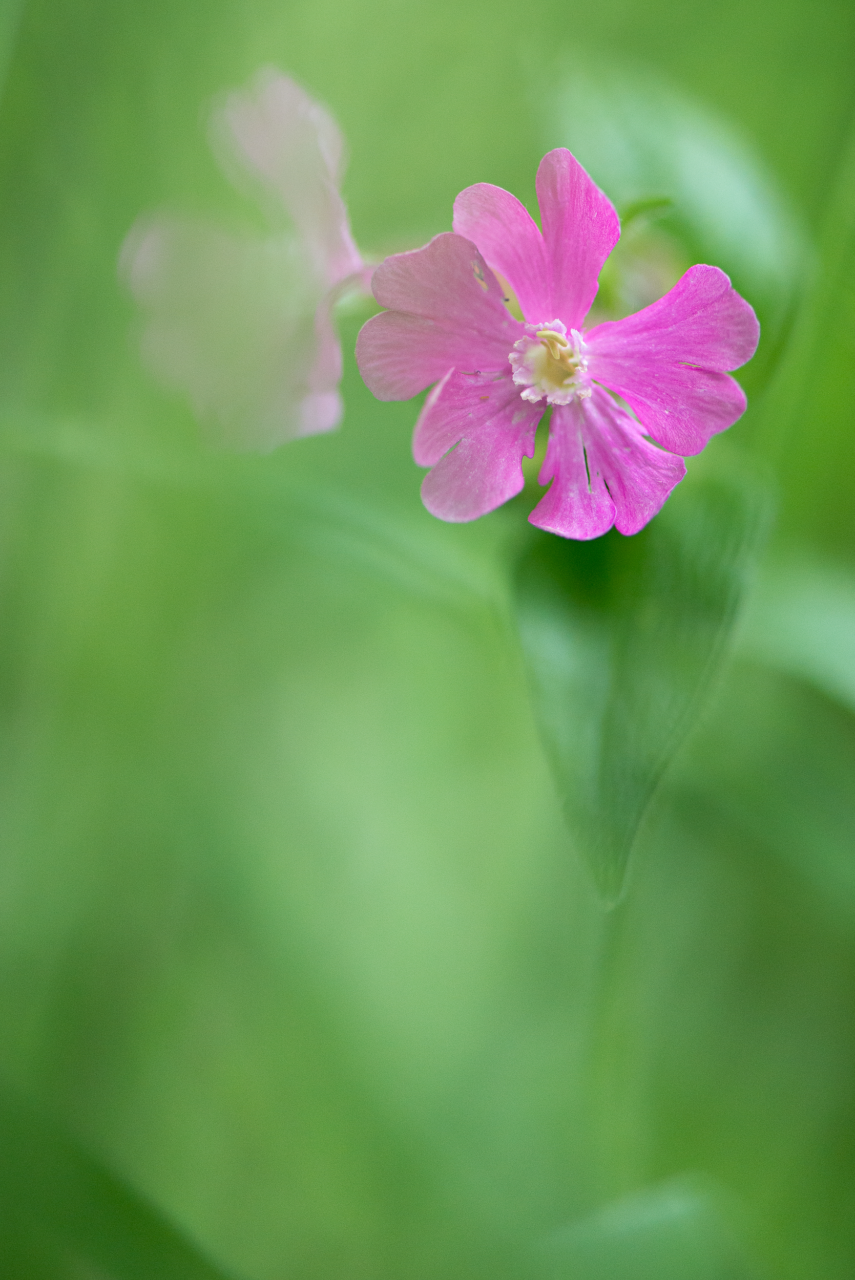 Dagkoekoeksbloem – Iris Waanders. Alle scherpte valt op de parallel gefotografeerde dagkoekoeksbloem. Door de vage bloem in de achtergrond heeft de foto toch voldoende diepte.