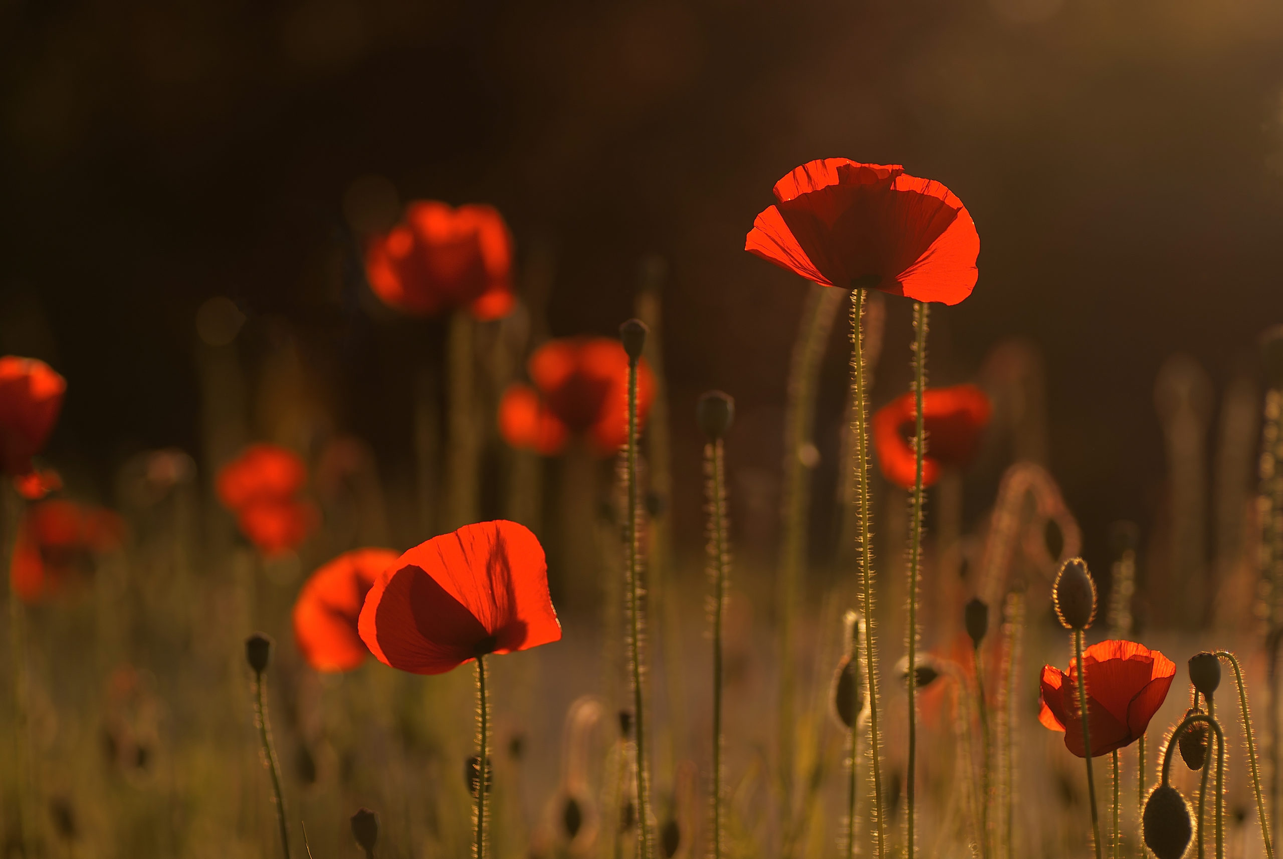 Klaprozen – Birgitte Bergman. Tegenlicht is een goed uitgangspunt voor low key foto’s. Het warme avondlicht maakt deze klaprozen extra sfeervol.