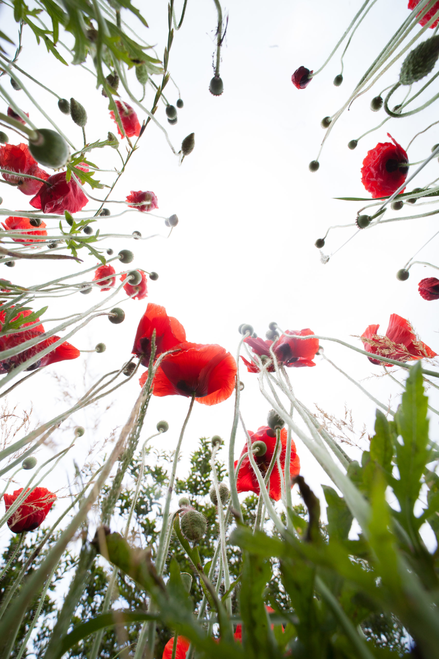 Klaprozen – Johannes Klapwijk. Door de camera met de achterzijde plat op de grond te leggen is een verrassend perspectief ontstaan.