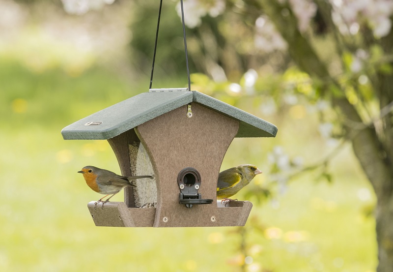 Deze plastic voederhuisjes zijn nauwelijks van echt hout te onderscheiden. Bovendien heeft dit materiaal veel voordelen: vorstbestendig, ze rotten of roesten niet, zijn waterafstotend en UV-lichtbestendig. En zo robuust dat je geen last hebt van vandalistische eekhoorns en spechten.