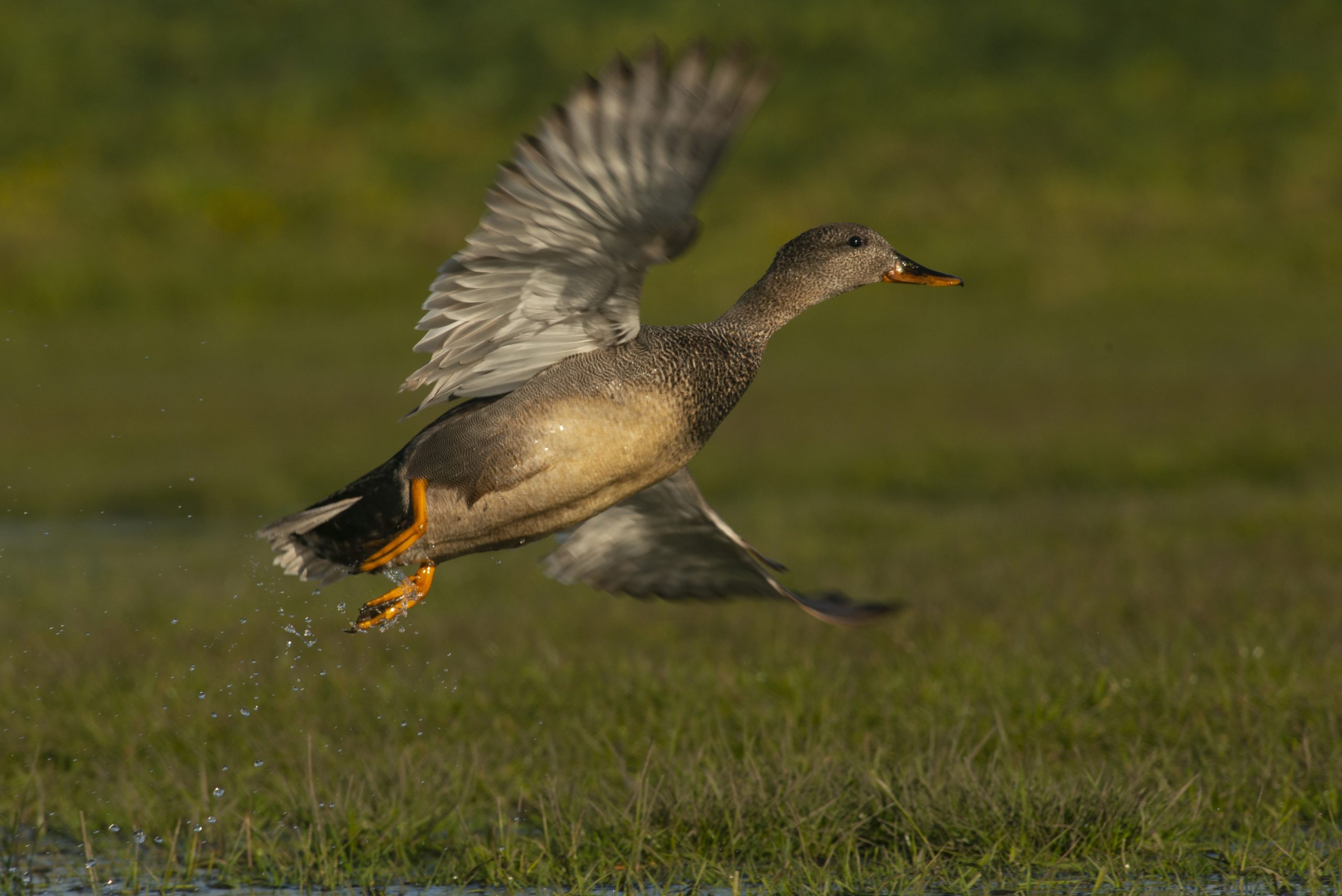 Op het Noord-Hollandse eiland Marken bezoeken we een weidevogelhut die midden in een plasdrasweiland is geplaatst door de boer. Die brengt je persoonlijk naar de hut toe, die meer lijkt op een schaft- of bouwkeet, maar dan helemaal op fotografen ingericht. Op weg naar de hut krijgen we een mooi idee van wat ons te wachten staat: vooral grutto’s voeren de boventoon; ze zijn net weer in groten getale in Nederland aangekomen na een lange tocht uit Afrika en doen zich tegoed aan de rijke voorraad wormen en insecten in het natte weiland. Maar door het geroep van de grutto’s heen zijn ook andere soorten te horen: tureluur, scholekster, het gekrak van krakeenden, wintertaling en natuurlijk ganzen. Het zijn vooral de grauwe gans en brandgans die zich hoorbaar laten gelden. Alles bij elkaar is het een vogelkoor dat zijn weerga niet kent, geen minuut is het stil.