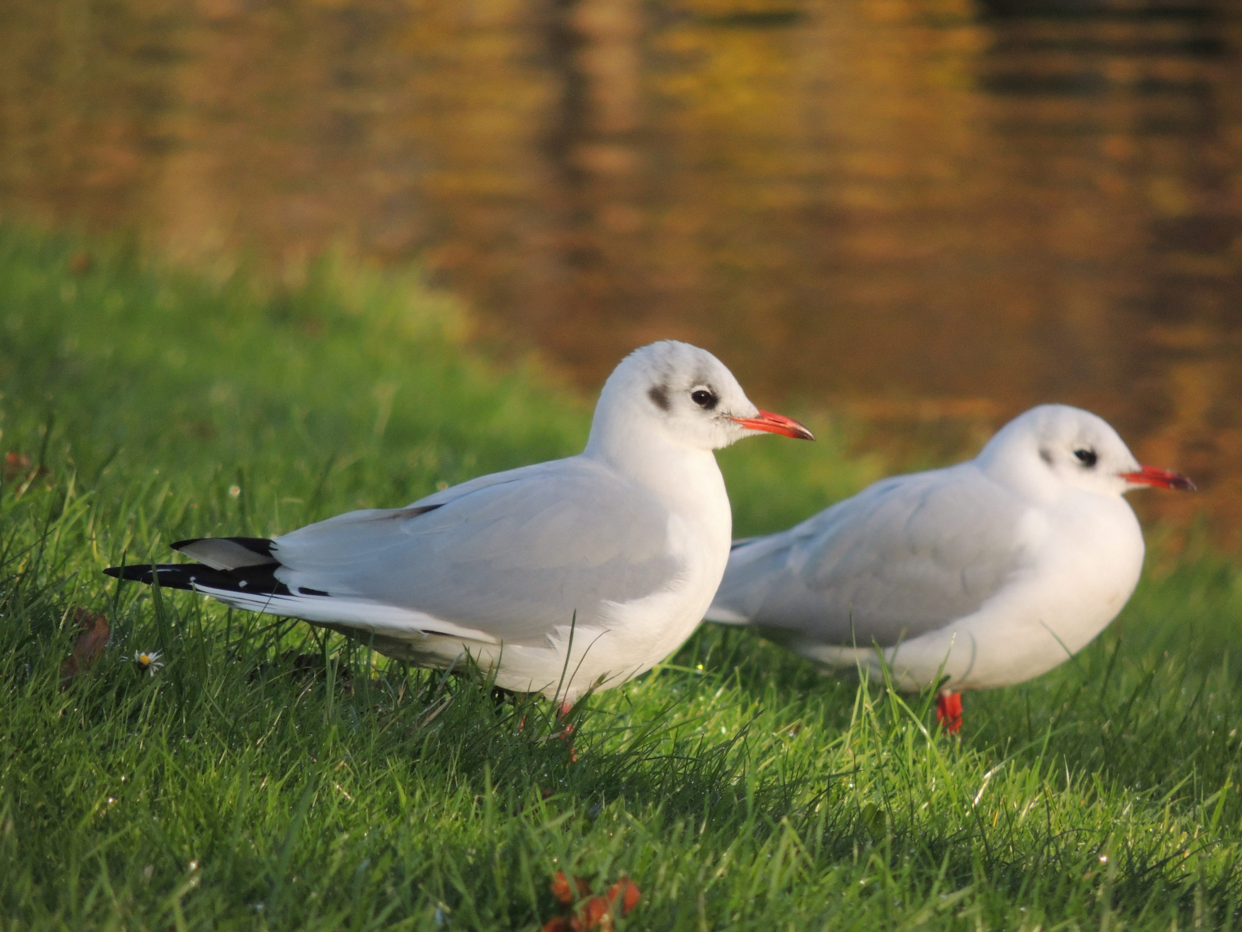 Ook kokmeeuwen zijn van de partij in de stad, maar ze hebben dan een gedaanteverwisseling ondergaan. In de herfst en winter verruilen ze hun chocoladebruine kopkap namelijk voor een sobere donkere oorvlek met een verbindingsstreep ertussen. Het lijkt dan net alsof ze een koptelefoon ophebben. Een koddig gezicht.