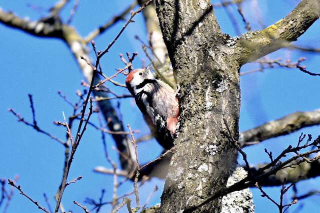De middelste bonte specht neemt de laatste jaren in aantal toe. Je herkent hem aan zijn rode pet en rozerode gestreepte flanken. Foto Laurens Steijn