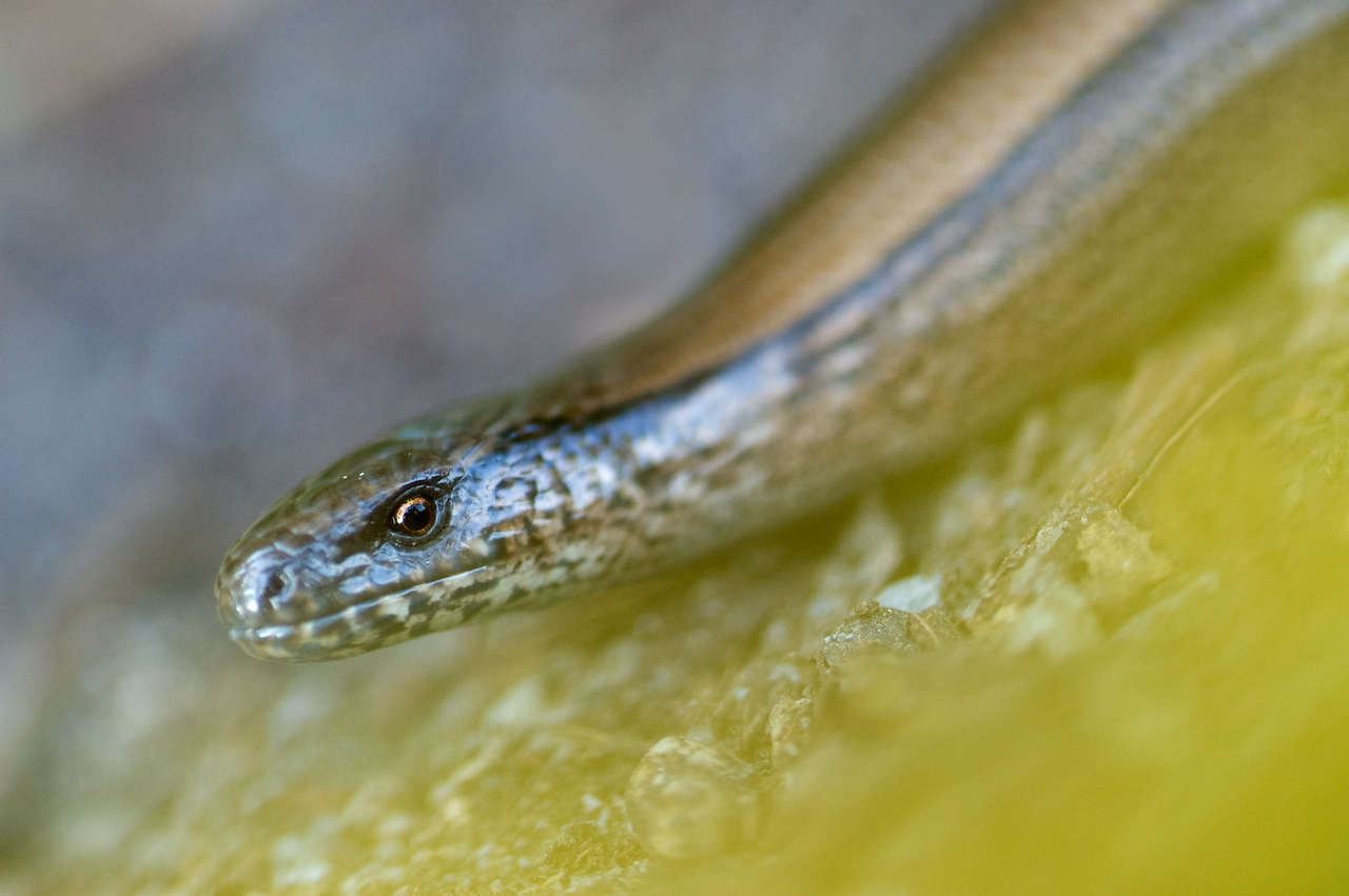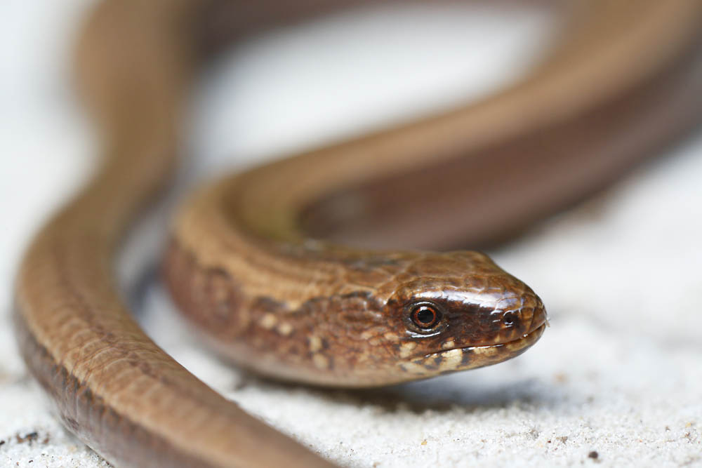Het lijkt een slang, maar de hazelworm is een pootloze hagedis. Het schuwe dier heeft een voorkeur voor bossen, bosranden, houtwallen, heide en weg- en spoorbermen. Foto: Niels Kooyman