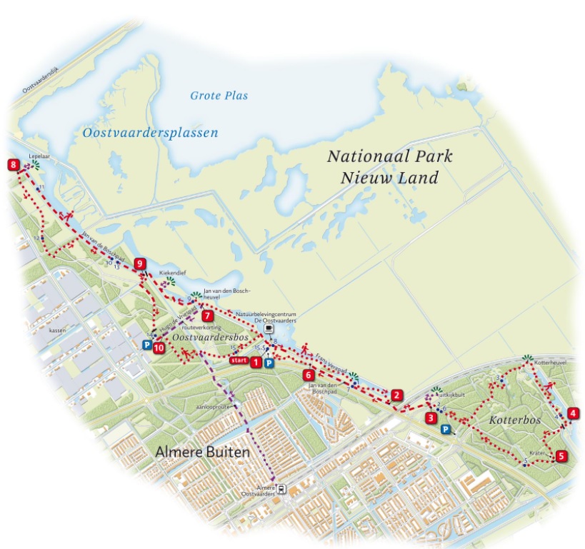 Startpunt: Natuurbelevingscentrum De Oostvaarders, Oostvaardersbosplaats 1, Almere.