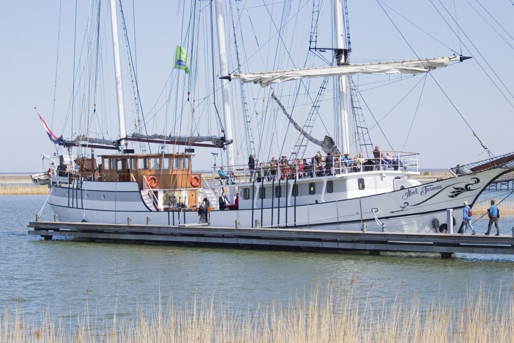 Het is slechts 9 kilometer varen vanuit de Bataviahaven in Lelystad, toch heb je de neiging ‘Land in zicht!’, te roepen wanneer de tweemaster Abel Tasman de Marker Wadden nadert. Het 40 meter lange zeilschip wordt in het voorjaar ook ingezet als veerboot, het geeft de reis naar het hagelnieuwe eilandenrijk extra glans.