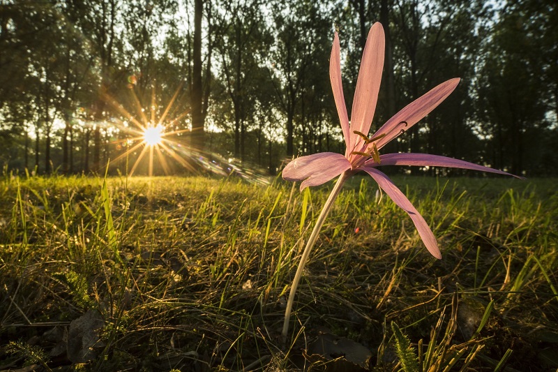 Maar in september vallen de forse roze ‘krokussen’, de herfsttijloos (met één l!) op. Alleen een fragiele bloem steekt boven de grond uit, het grote blad volgt pas in de lente. Aan deze merkwaardige groeiwijze dankt de plant dan ook zijn naam.