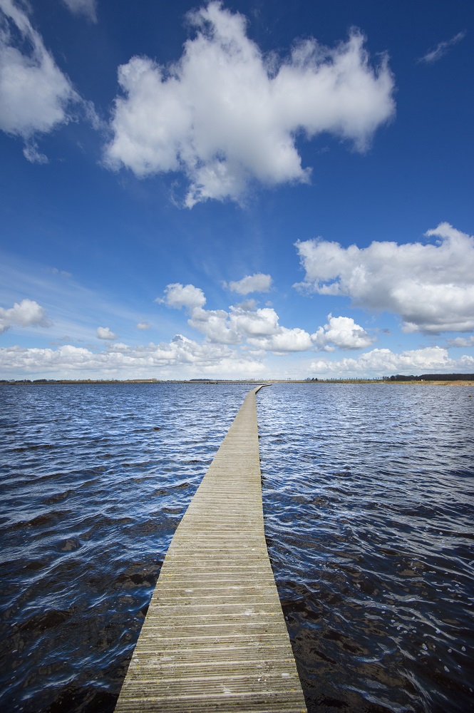 De paden in ’t Roegwold en de omringende gebieden zijn leeg en lang. Hoogtepunt is een knuppelpad (vlonderpad) van 750 meter lang over het water van het Dannemeer. Halverwege het vlonderpad vind je een bankje met een van de mooiste uitzichten van Nederland. Wat je ziet vanaf die bank? Zoals al eerder gezegd: water, lucht, riet én vogels, zoals lepelaar, grote zilverreiger, brilduiker… de lijst is lang. En met wat geluk zie je al een bruine kiekendief vliegen, die komt zoetjesaan terug uit Afrika.