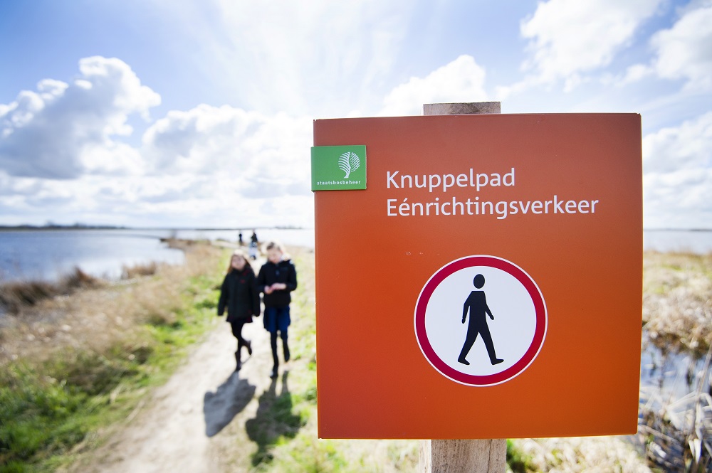 Met het knuppelpad is trouwens iets bijzonders aan de hand. Ten eerste is het pad smal. Het is drie wandelschoenen (maat 44) en een beetje breed. Dat is weinig. Als je even te lang omhoogkijkt naar de vogels én tegelijk wandelt, lig je zo in het water. Ten tweede: op het pad geldt eenrichtingsverkeer. Volgens mij is dat uniek in wandelaarsland. Het valt te verdedigen, want elkaar passeren is even een spannend moment.