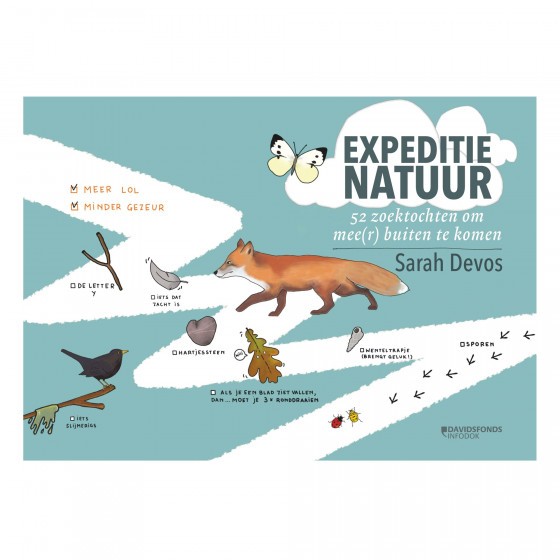 Sarah Devos, die eerder al het Het bosboek en Het zeeboek maakte, heeft 52 zoekplaten samengesteld, waarmee ouders en hun kinderen naar buiten kunnen, op zoek naar alles wat de natuur te bieden heeft. Expeditie Natuur, heet het boek en het staat vol met speurtochten voor in de natuur. Iedere tocht heeft een eigen thema, bijvoorbeeld: wolken, vogels, schelpen, geluiden, stenen, takken, boomblaadjes of kriebelbeestjes. Prijs: € 16,99.