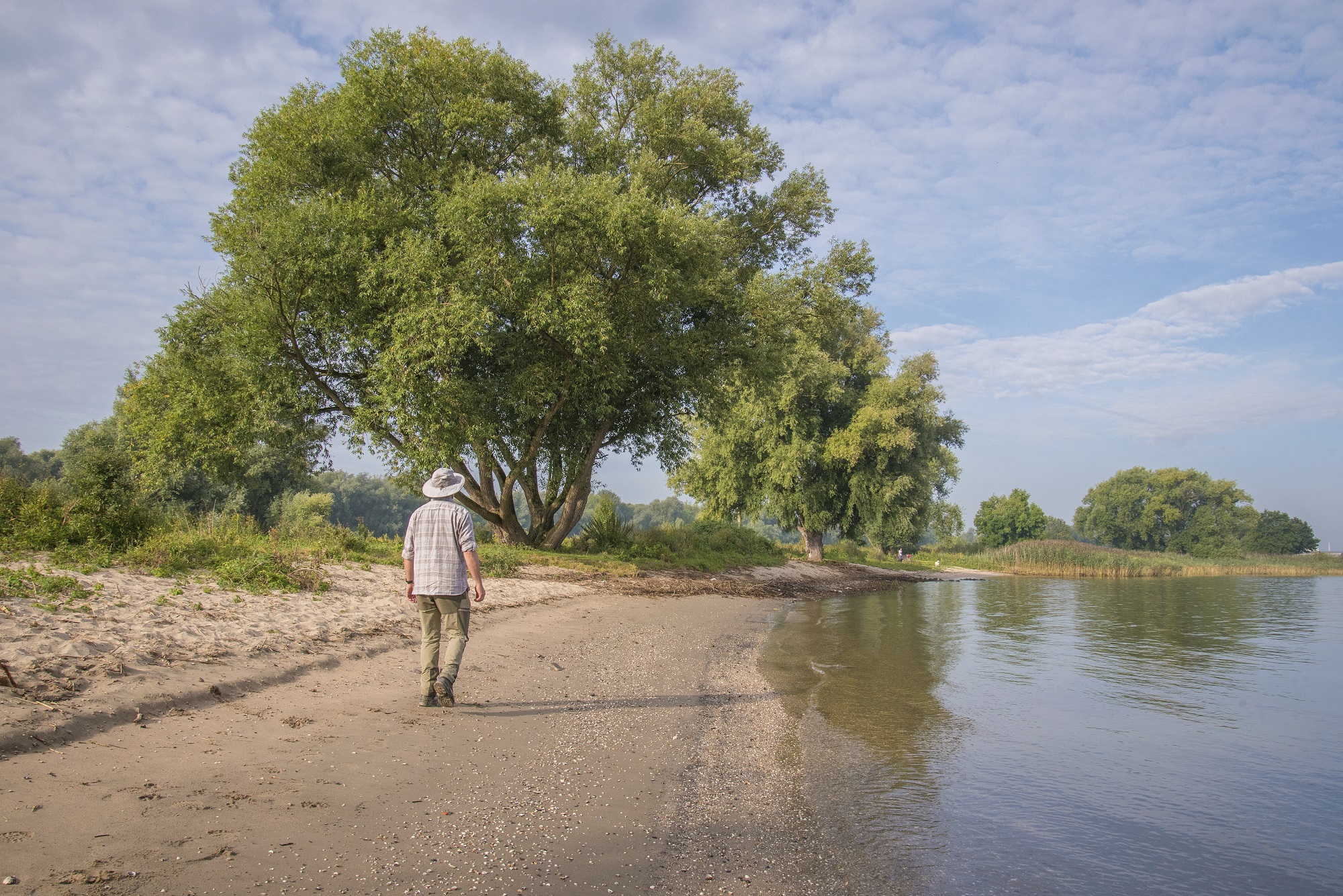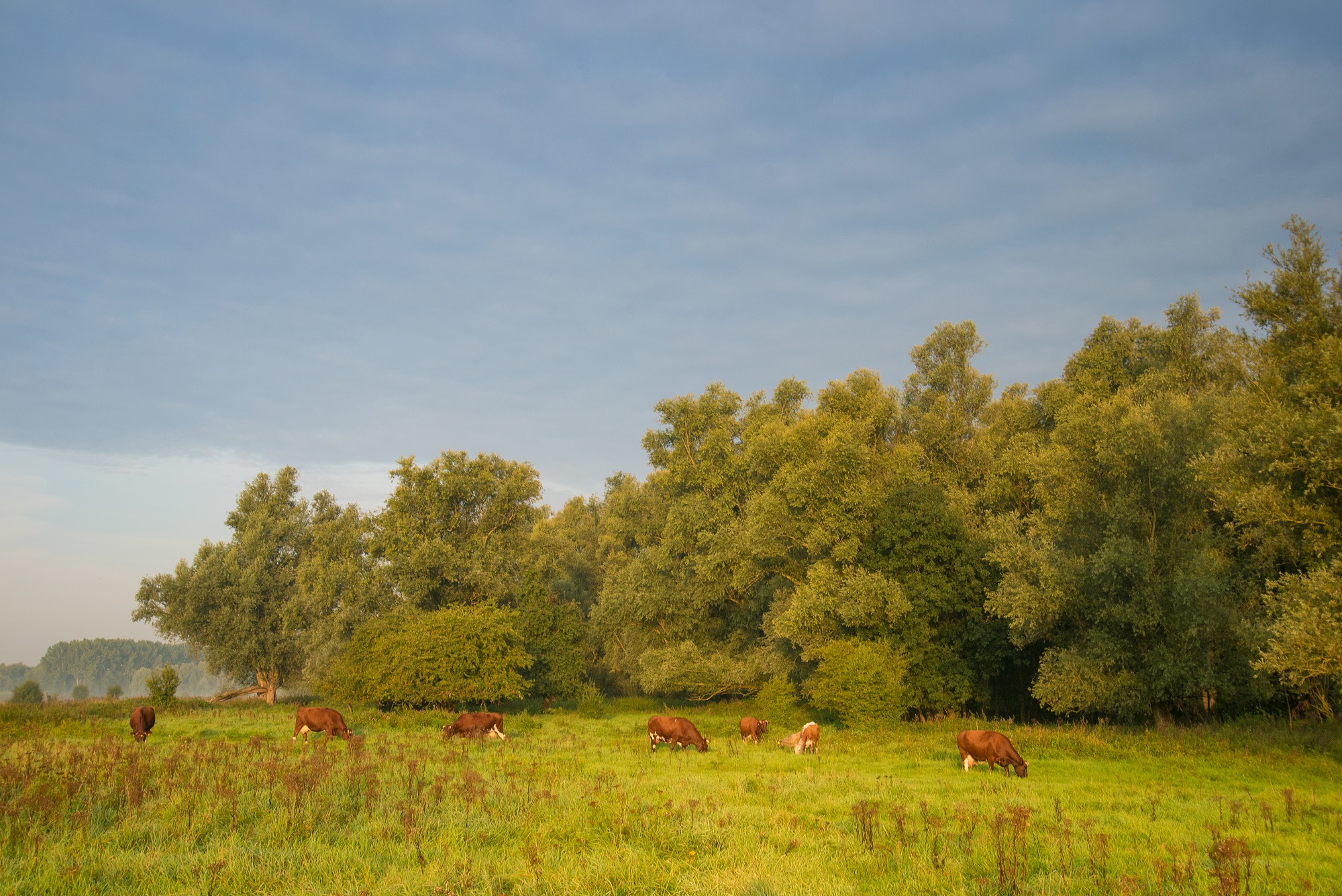 De uiterwaarden zijn alle drie toch net even anders. Eerst loop je over ’t Gors. Tussen dichte, gevarieerde loofbossen (met zowel wilgen als eiken) liggen hooilandjes. De vlinders en libellen vliegen er op mooie dagen vaak nog tot eind september, omdat het er zo beschut is.