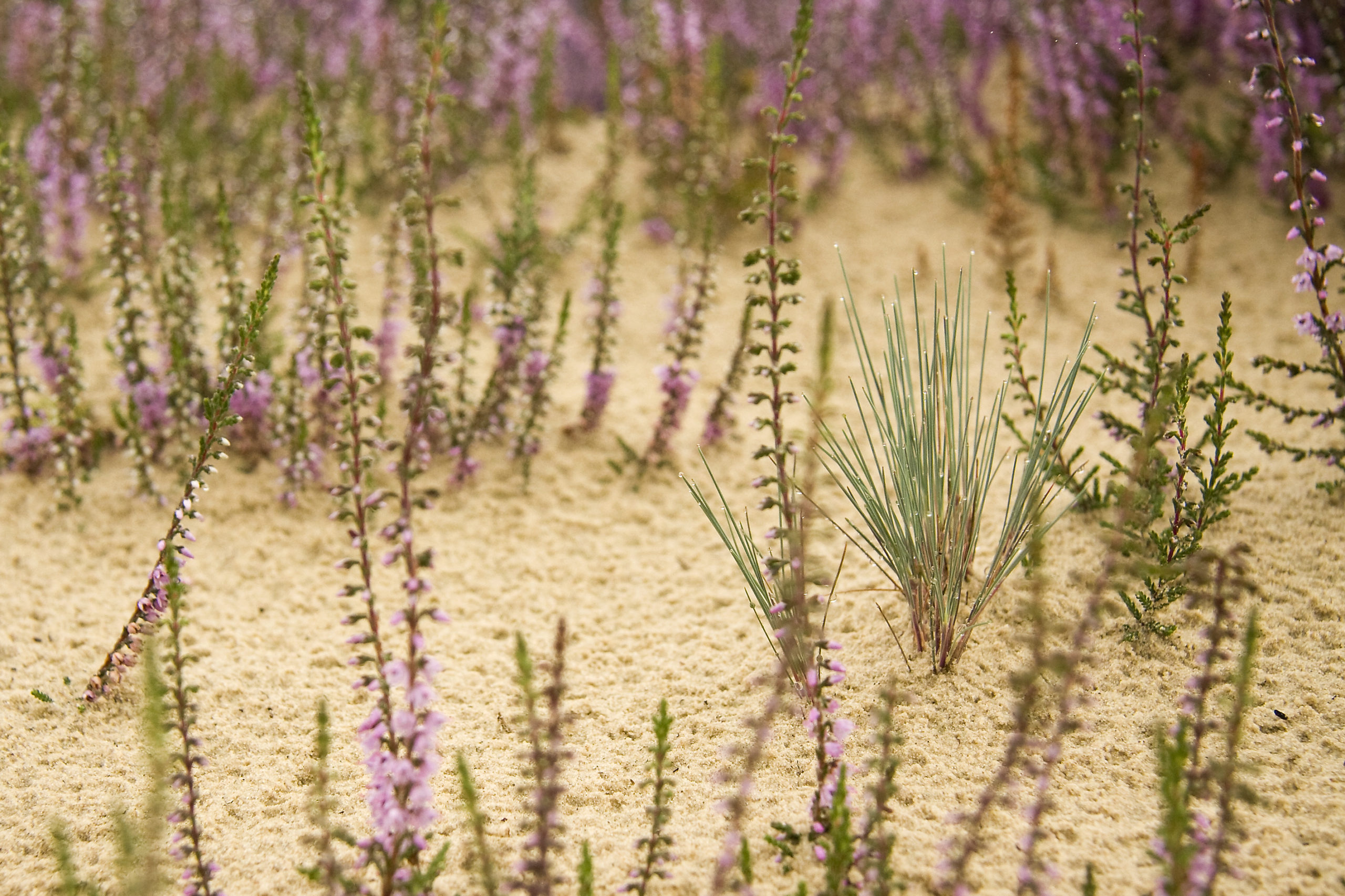 De zandverstuiving op De Hoge Veluwe is een mozaïek van beweeglijk zand, mos en korstmosbegroeiingen met een pionierkarakter en pioniergraslanden met buntgras. De meest bijzondere bewoner is de lentevuurspin, een uniek diertje dat vrijwel alleen hier voorkomt.