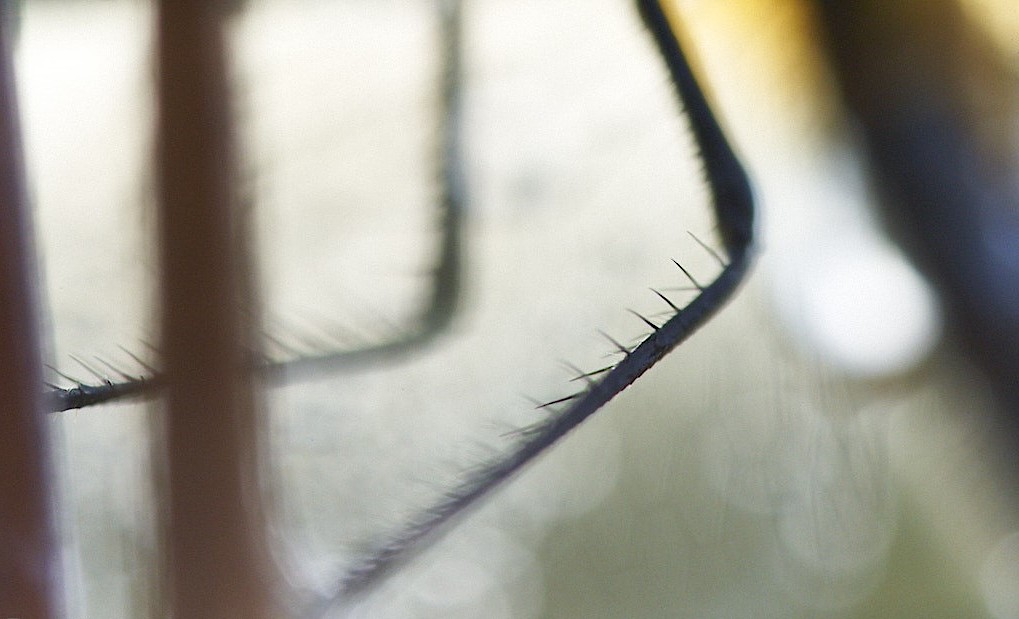 “Het idee van ons Roots uitje was om libellen te fotograferen maar ik was vooral gecharmeerd van deze kleurrijke rups. Zonder hulp van Chris had ik deze foto niet kunnen maken. Het loont dus om met een groep op pad te gaan! Hij heeft de rups gevonden en het blaadje met rups vast gehouden zodat ik deze foto kon maken. Ik heb de rups gefotografeerd met de Canon MP-E 65 millimeter, een speciale lens waarbij je macrofoto’s met een vergroting van 1 tot 5 x kan maken. Deze foto van rupsenvoetjes is gemaakt met maximale vergroting bij ISO 1600, f/5.6 en 1/50 sec.”