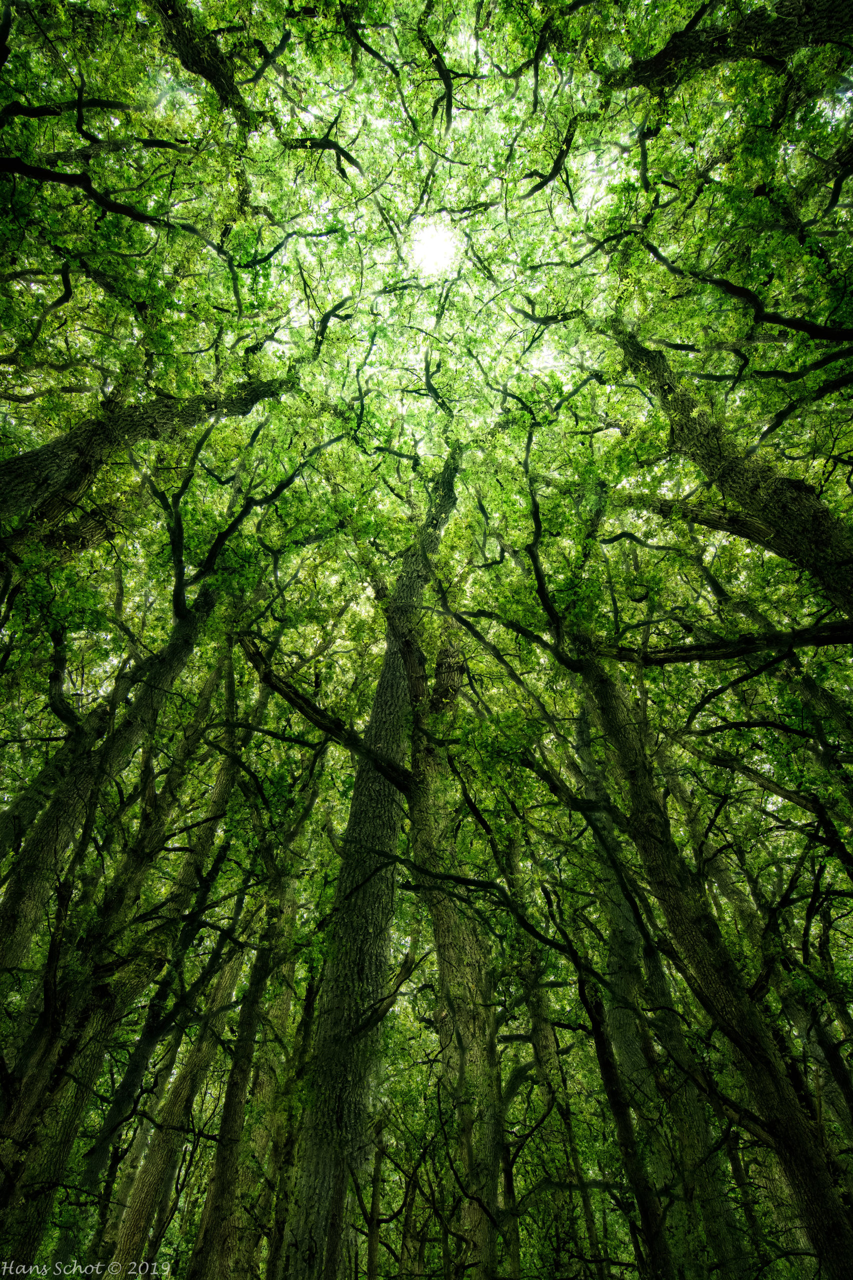Ga nu bijvoorbeeld dicht bij een boom staan richt de camera langs de takken naar boven, naar een opening tussen de boomkruinen maak een snelle roterende beweging terwijl je de ontspan knop indrukt ( hopelijk is je camerariem lang genoeg).